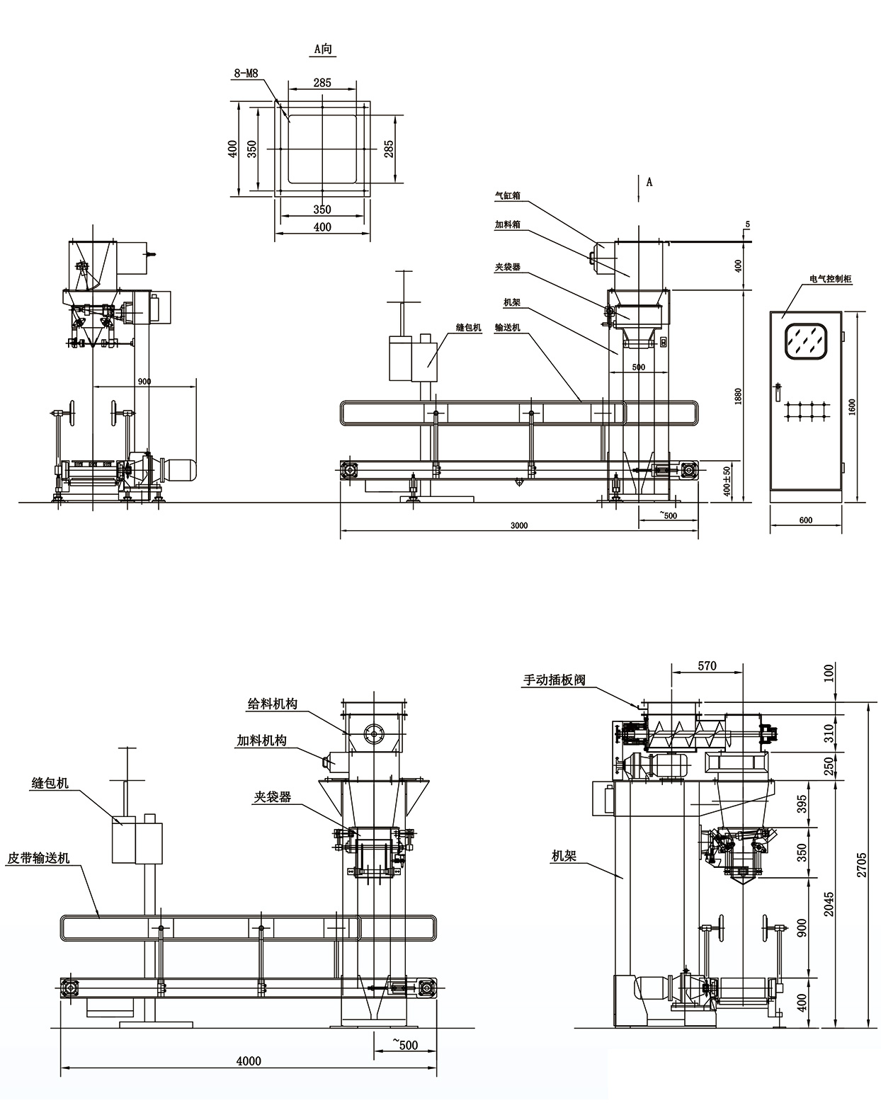 총 규모 포장 기계의 충전 기계의 하단에 무게 호퍼가 없으며, 재료는 직접 포장 가방으로 전송되며, 무게 시스템은 재료와 포장 가방을 함께 무게하는 데 사용됩니다.컨베이어와 컨컨베이어와 컨베이어와 컨베컨베이어와 컨컨베이어와 컨베이어와 컨베컨베이어와 컨베이어와 컨베컨베이어와 컨베컨베이어와 컨베컨베이어와 컨베이어와수동 가방 입기 후에, 포장 기계는 자동으로 가방 입 클램핑, 물자 채우기, 물자 가방 방출을 완료하고, 가방 입은 수동 마무리 후에 밀봉됩니다
